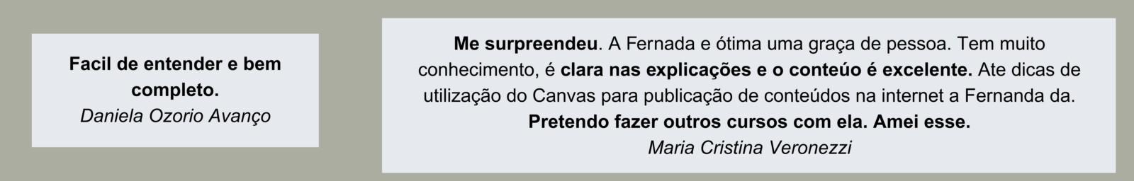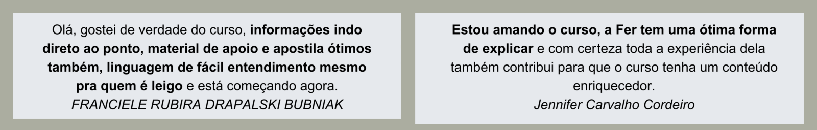 O curso tem garantia INCONDICIONAL de 7 dias. Caso não fique satisfeita, o valor do curso é reembolsado por completo.