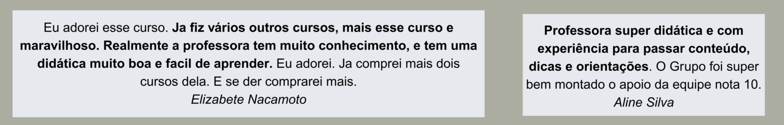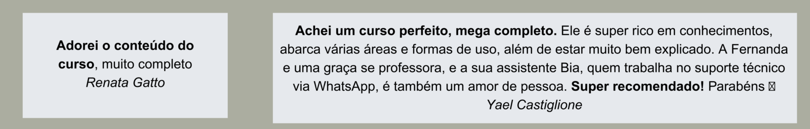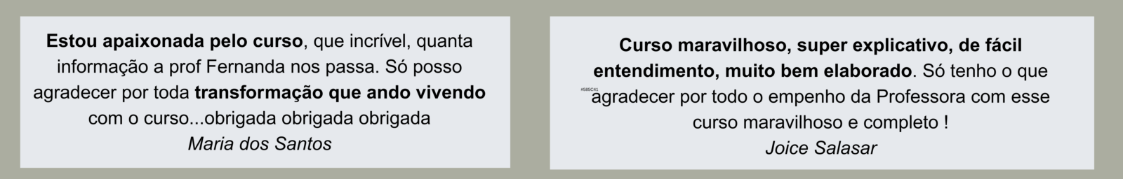 O curso tem garantia INCONDICIONAL de 7 dias. Caso não fique satisfeita, o valor do curso é reembolsado por completo.
